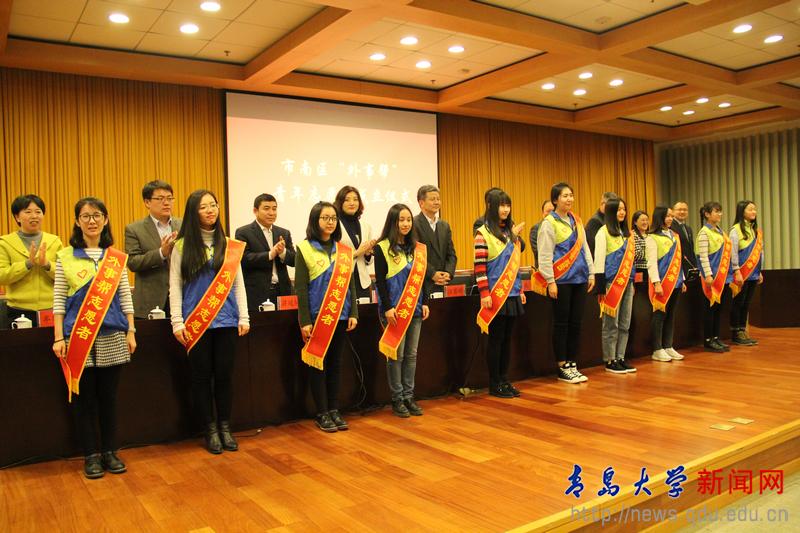 新闻网讯 3月22日,我校外语学院与共青团市南区委共建“外事帮”青年志愿者服务团签约仪式,在市南区机关301会议室举行。校党委常委、副校长汪黎明,市南区委副书记张忠,团市委志愿者服务工作部副部长李耀贤等出席签约仪式。