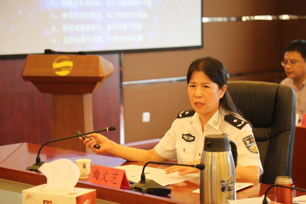 学习会上,青岛市公安局网警支队党委委员、警务技术二级主任曲文芝以“强化意识凝聚合力,筑牢网络安全防线”为题作专题辅导报告。她在报告中结合翔实的案例,从网络安全的总体形势、工作存在的注意问题、网络安全相关的法律、安全管理建议及对策等四个方面,以政治和大局的高度深刻阐述了维护网络安全的重要性、必要性、紧迫性,并对如何加强高校网络安全提出了专业性很强的指导意见。