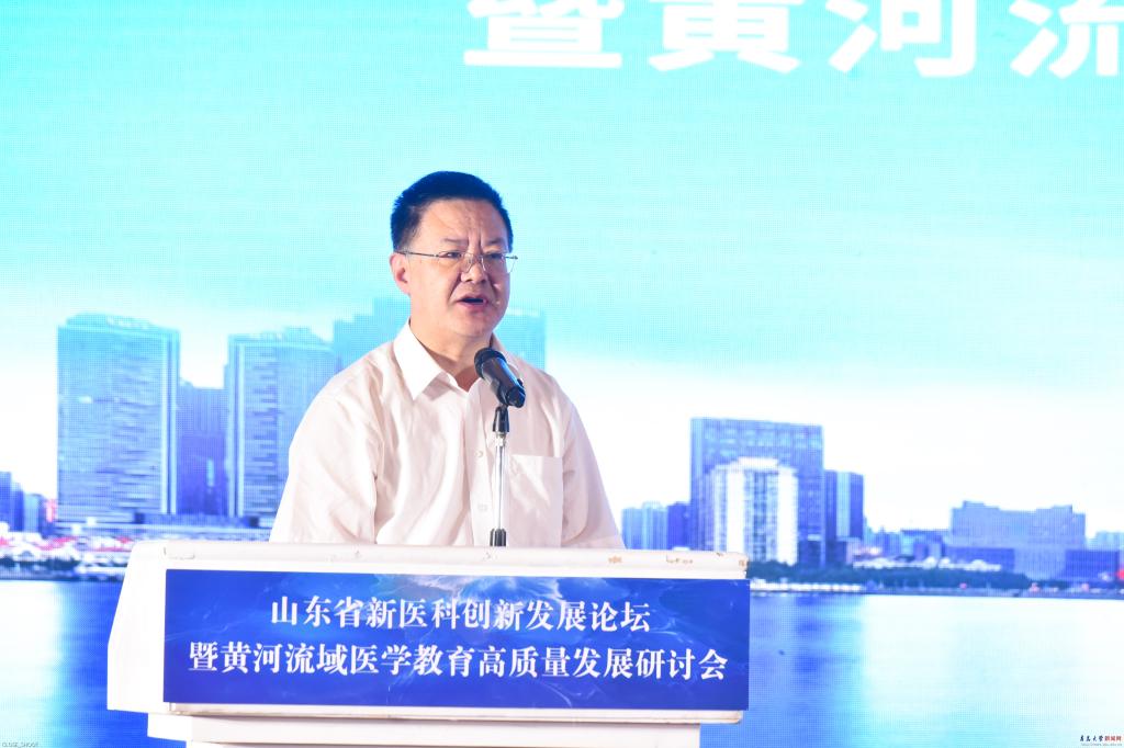 白皓在致辞中表示,医学人才是保障人民群众身体健康和经济社会发展的重要资源,医学教育是卫生健康事业发展的重要基石。以习近平同志为核心的党中央高度重视医学教育,始终把医学教育摆在关系教育和卫生健康事业优先发展的重要地位。山东是医学教育大省,近年来,在省委省政府的坚强领导和系统谋划下,全省医学院校积极推进医学教育创新发展,综合竞争力和服务医疗卫生事业能力不断增强,高质量发展逐渐起势、成效渐显。但是,与高等教育规模发展相比,与经济大省地位相比,与广大人民群众的期盼相比,医学教育还存在很多不足,大而不强的问题还没有得到根本解决。白皓要求,全省医学院校及广大教师,以本次论坛为契机,紧抓机遇、趁势而上,以学科专业建设为基础,进一步深化教育教学改革,强优势、彰特色,加快推进新医科建设,积极推动教学水平和育人质量更上台阶,为全省高等医学教育和医疗卫生事业的发展做出新的更大的贡献。