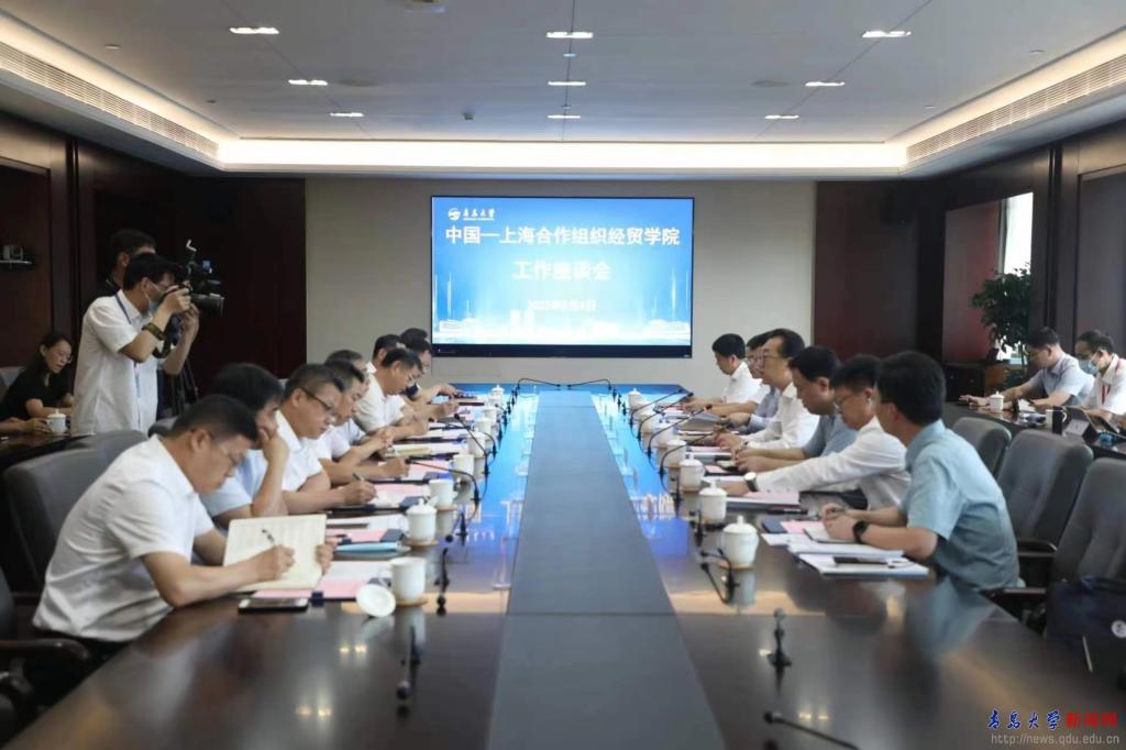 胶州市、上合示范区相关部门,校党委办公室、校长办公室、基建处、教育集团、上合校区建设办公室、上合组织经贸学院办公室等部门负责人参加了会议。