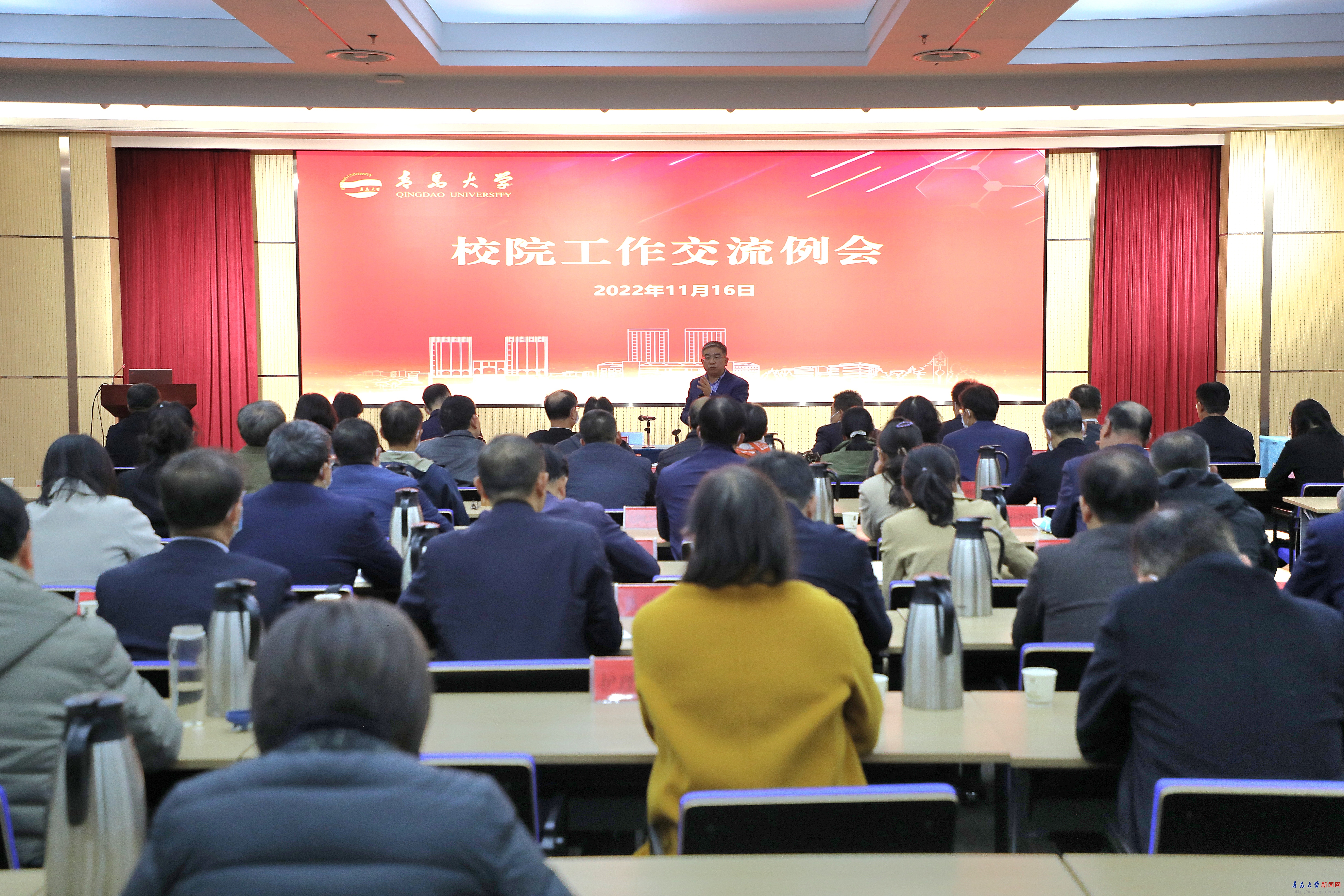 新闻网讯 11月16日,学校在会议中心多功能厅召开校院工作交流例会。会议的主题是深入贯彻落实党的二十大和二十届一中全会精神,以学院办大学成效推动“十四五”规划有效落实。校党委书记胡金焱现场点评并总结讲话。会议由校长夏东伟主持。校领导杜方波、汪黎明、李军、于永明、范玉斌、刘彩云、肖江南、吴世珍、徐龙飞出席会议。