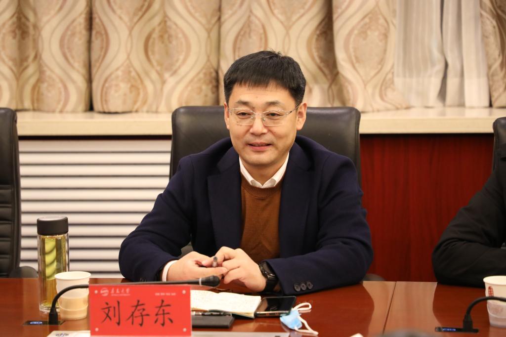 夏东伟代表学校对刘存东一行来访表示欢迎,对市南区一直以来对学校事业发展的大力支持表示感谢。他从学科全、规模大、发展快等方面介绍了学校近年事业的快速发展,及人才队伍建设、学科建设、人才培养、成果转化等取得的突出成绩,重点介绍了医学与生命健康、纺织与先进材料、师范教育、文化创意、新能源、新一代信息技术、经济管理与社会治理等七大学科集群的建设情况和优势特色。他希望进一步加大与市南区在医疗健康、基础教育、文化旅游等方面的合作,为市南区高质量发展做出更大贡献。