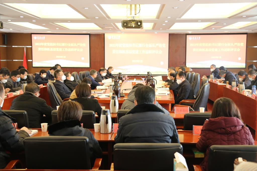 新闻网讯 1月6日上午,学校2022年度基层党委书记履行全面从严治党责任和抓基层党建工作述职评议会议在办公楼407会议室召开。校党委书记胡金焱主持会议并作点评讲话。校领导夏东伟、杜方波、李军、于永明、范玉斌、刘彩云、肖江南、孔伟金、吴世珍、徐龙飞出席会议。