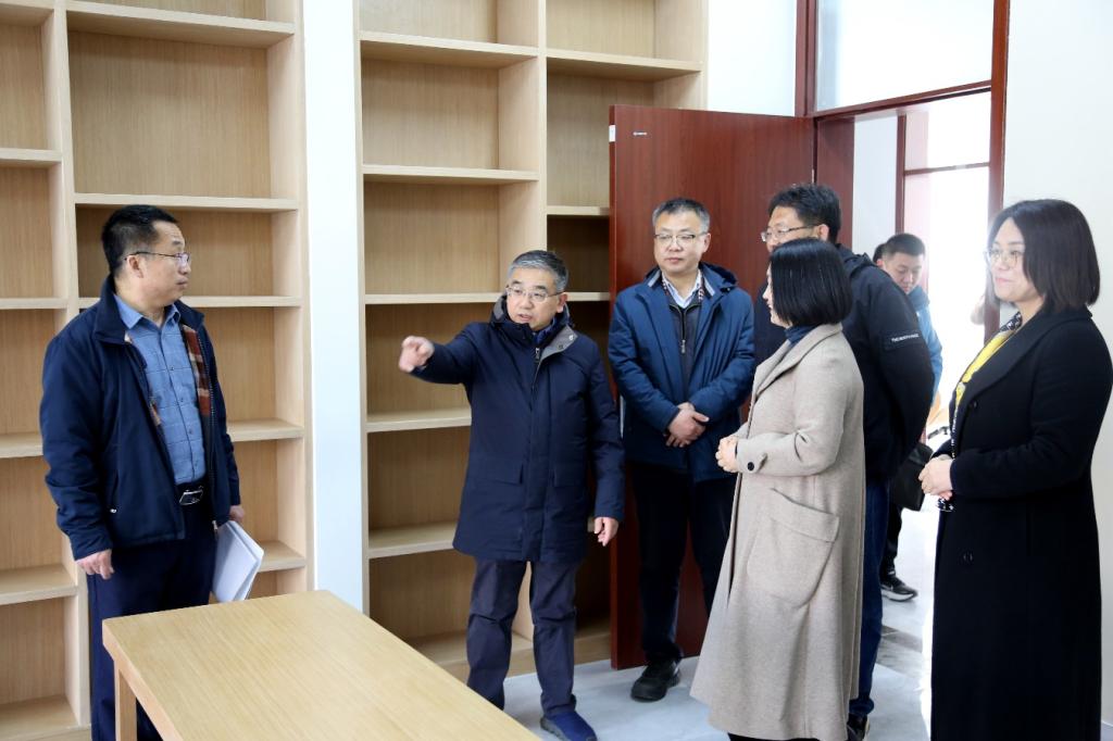 胡金焱实地调研走访了综合档案馆、智慧校园与信息化建设中心、离退休工作处、人文社科科研机构、创新创业学院和国家大学生文化素质教育基地(浮山书院),详细了解各单位已调配用房的功能布局和建设情况,现场听取了办公、科研用房调配搬迁进展和管理使用情况汇报。