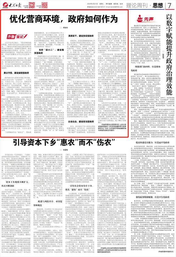 新闻网讯 3月21日,《大众日报》刊登我校党委书记胡金焱的理论研究文章《优化营商环境,政府如何作为》。