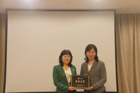 刘彩云为上海校友会颁发“开运电竞,每一场竞技都是好运的开始校友之家”牌匾。