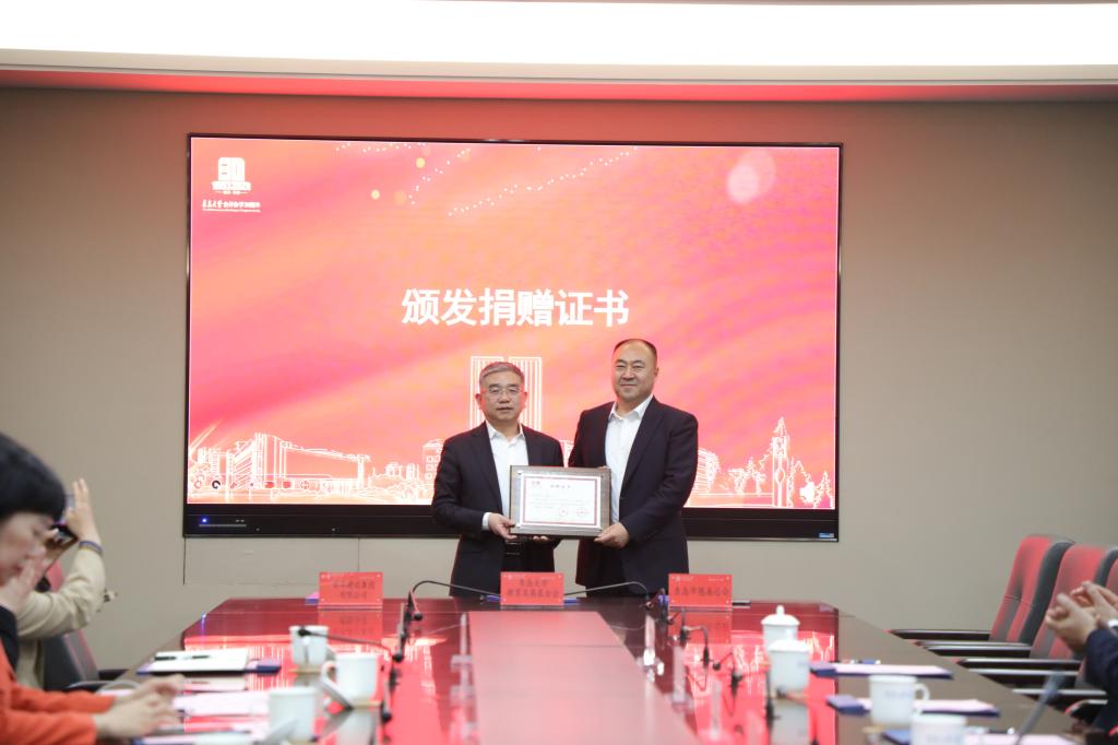 胡金焱代表学校感谢荣华建设集团的慷慨捐赠,同时向荣华建设集团、青岛市慈善总会和山东大学青岛校友会长期以来对学校事业发展的关爱支持表示衷心感谢。胡金焱从变与不变两个维度,高度评价了荣华建设集团的改革发展与社会担当。他谈到,变的是集团在孙董追求卓越的精神引领下,科技引领、创新发展,事业日新月异,业已成为建筑行业绿色环保、高效节能的领跑者和标准制定者;不变的是集团一如既往的家国情怀和社会担当,对推动青岛市城市发展和社会公益慈善事业做出了巨大贡献。
