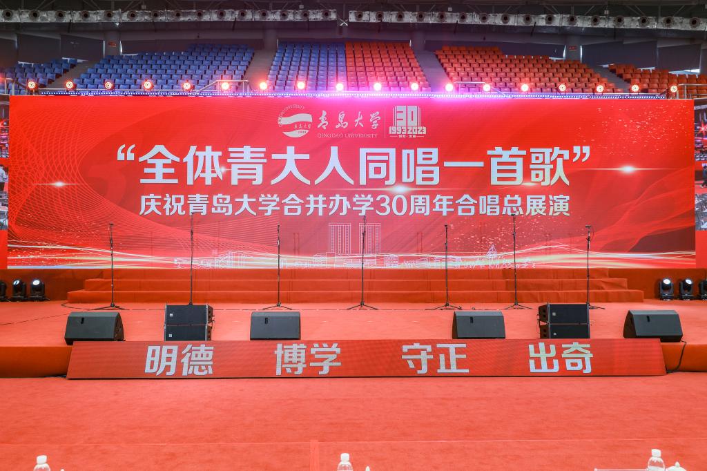 展演最后,参与两轮展演的31支合唱团及各学院(部)、各部门、各单位领导,以及教职医务员工和青年学生代表共同唱响《青大之歌》,迎接庆祝我校合并办学30周年,展现了奋发向上、开拓进取、薪火相传的精神风貌,传递了对母校的祝福和对祖国的热爱。