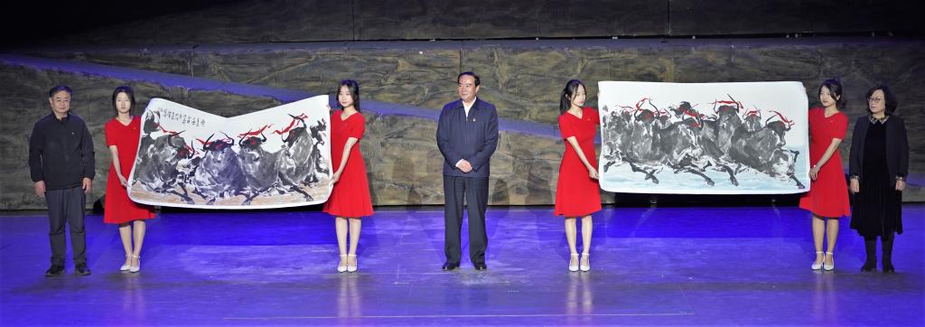 新闻网讯 为深入开展学习贯彻习近平新时代中国特色社会主义思想主题教育,丰富学习形式,4月25日晚,学校在青大剧院举办主题教育特色党课--民族舞剧《渊子崖》展演。省委第二十四巡回指导组组长贾瑞蔼、副组长岳远彬及指导组全体成员,临沂大学党委书记王焕良,我校党委书记胡金焱,校长夏东伟,校党委副书记杜方波、肖江南,校党委常委、副校长李军、孔伟金,副校长李荣贵等参加了党课学习。