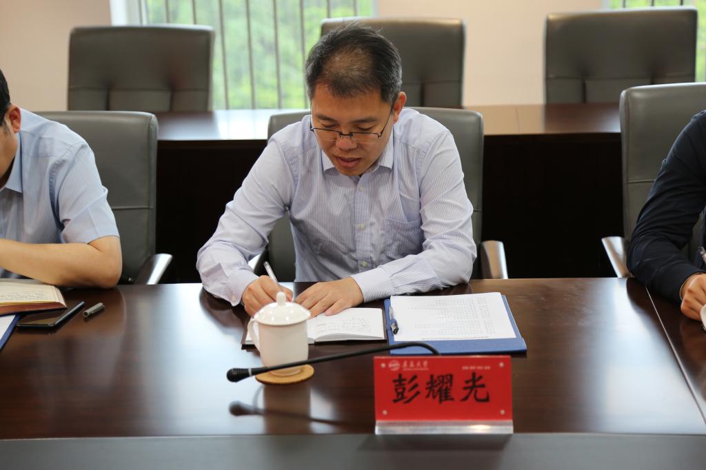 胡金焱对彭耀光一行表示热烈欢迎,向省习近平新时代中国特色社会主义思想研究中心对我校工作的支持表示感谢。