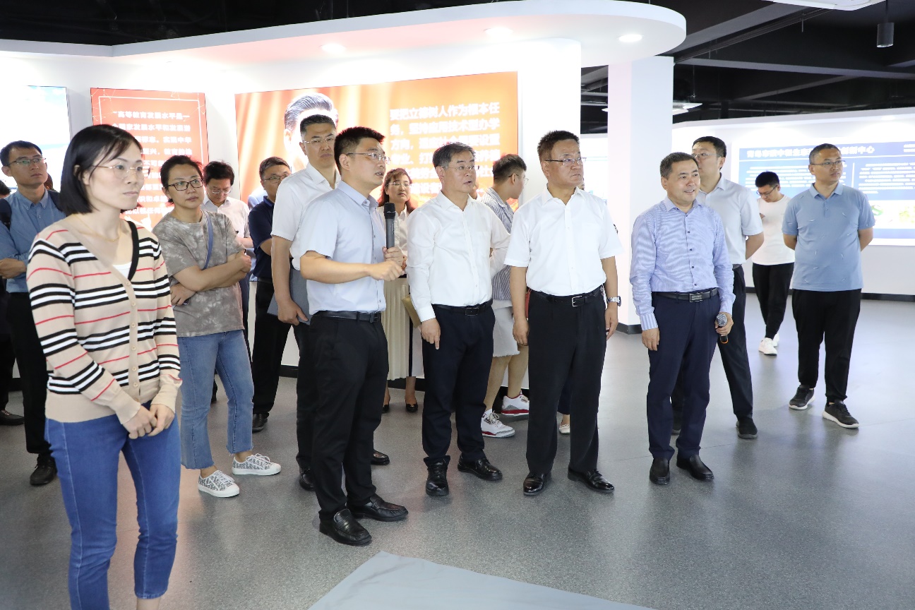 孙海生一行实地察看了项目成果综合展区、多功能路演厅、沉浸式体验中心、概念验证中心等建设情况,观摩了人体姿态智能感知、肿瘤精准医学、可穿戴设备、海洋协同中心平台、海藻医用制品、生命健康等实物展示,结合样品功能特点,与项目成果专家团队进行了交流互动。