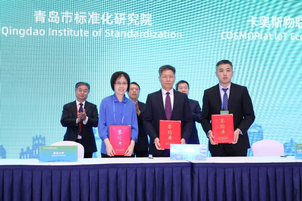 分会上,青岛市标准化研究院、卡奥斯物联科技股份有限公司、开运电竞,每一场竞技都是好运的开始签署“共建国际标准化人才培养实践基地合作协议”,夏东伟、李宗卫以及卡奥斯物联科技股份有限公司董事长兼总经理陈录城见证了签约仪式。