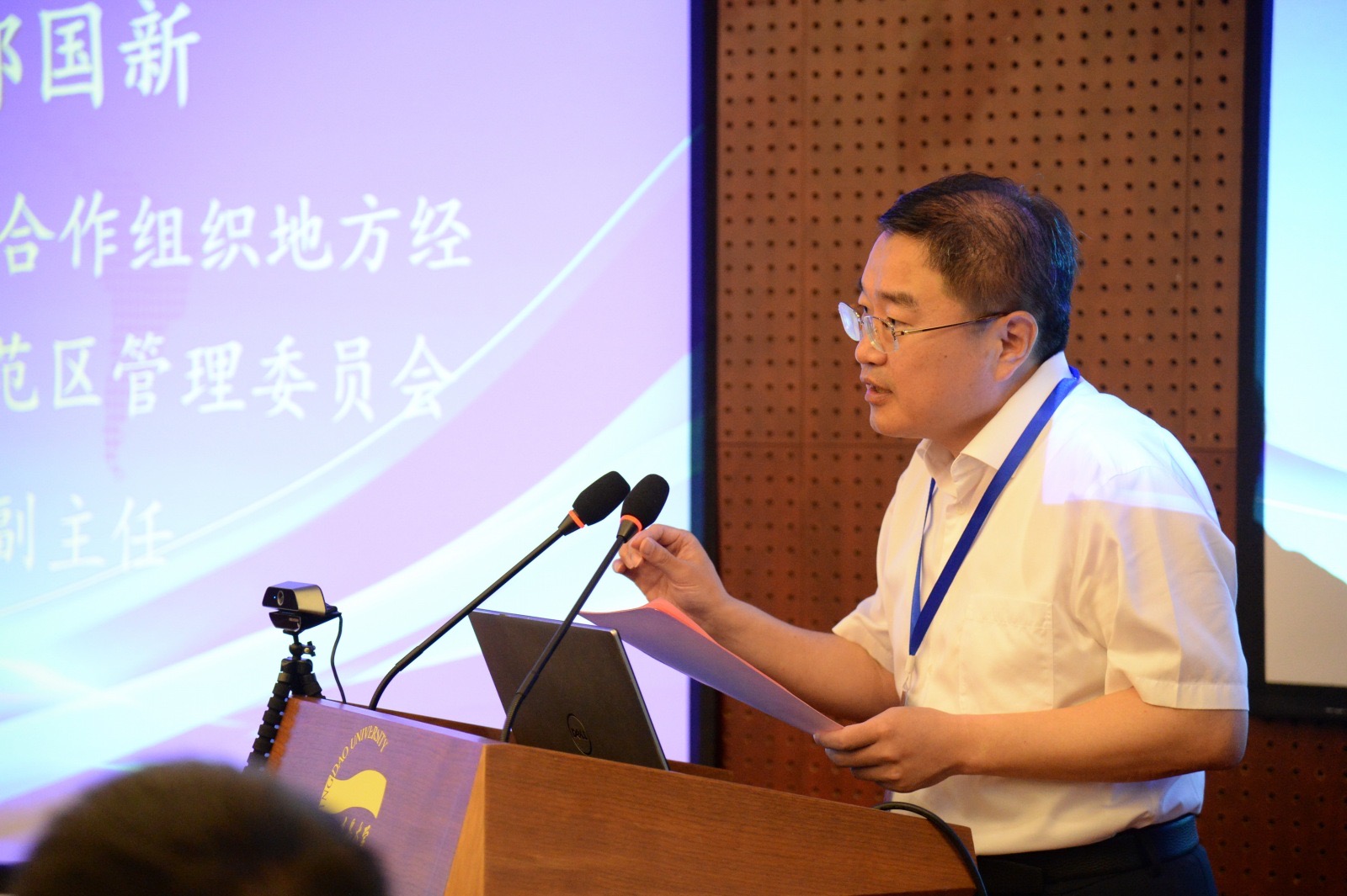 郝国新在致辞中介绍了中国-上海合作组织地方经贸合作示范区的建设情况,尤其是在推进“四个中心”和上合组织经贸学院建设中取得的成绩。