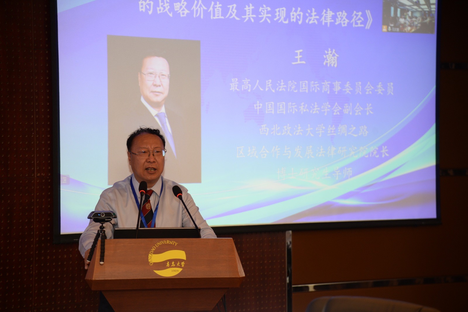 中国国际经济法学会副会长、中国政法大学国际法学院院长孔庆江,最高人民法院国际商事委员会委员、西北政法大学丝绸之路区域合作与发展法律研究院院长王瀚分别作题为《上海合作组织自贸区与丝绸之路经济带的制度建设》《上合组织成员国间铁路运单国际流通的战略价值及其实现的法律路径》的报告。