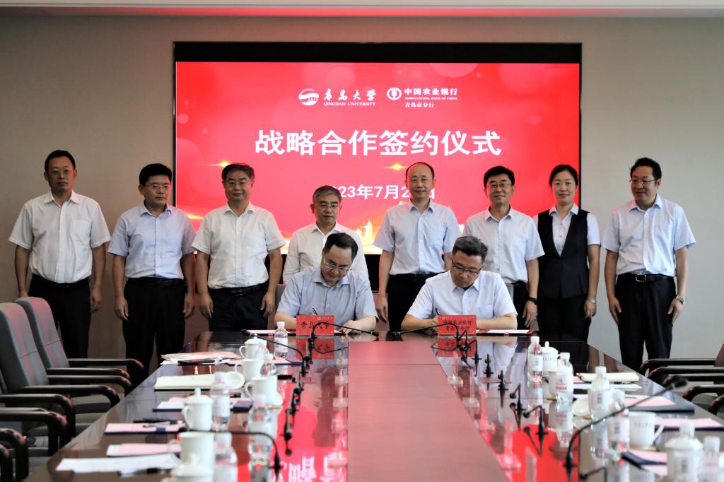 新闻网讯 7月24日上午,我校与中国农业银行青岛市分行战略合作协议签署仪式在会议中心302会议室举行。中国农业银行青岛市分行党委书记、行长邵利洪,党委委员、副行长孙鹏,党委委员、纪委书记宋秀峰,校党委书记胡金焱,校长夏东伟,党委常委、副校长李军出席签约仪式。仪式由校合作发展处处长张燕主持。