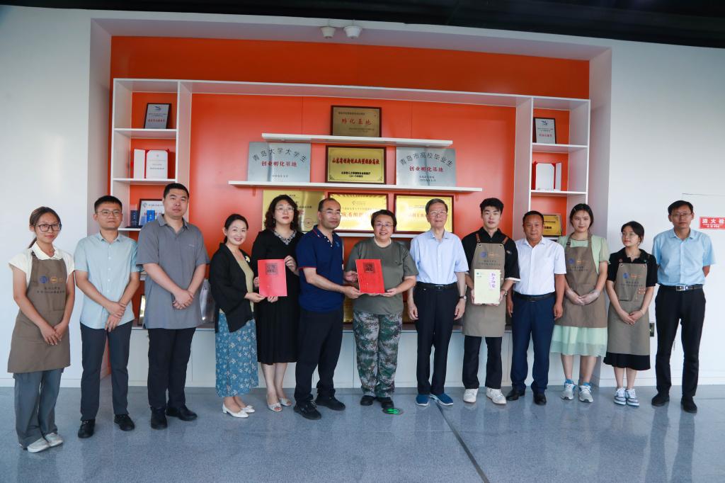 会前,孔伟金陪同周静一行参观了学校非物质文化研究中心、分析测试中心、慧创空间和国家大学生文化素质教育基地(浮山书院)。周静一行在慧创空间品尝了创业学生们制作的咖啡甜点,在国家大学生文化素质教育基地详细了解了浮山书院的人才培养模式,并赠送资料留念。