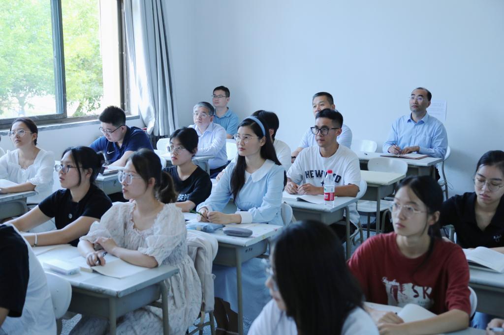 在浩园1号教学楼607教室,胡金焱听取了法学院教师石慧的《宪法专题》课程。课后,胡金焱对同学们说,两年的专业硕士学习是夯实专业基础、精进专业能力的关键时期,希望大家在法理基础上继续加强,有更深厚的学术基础。胡金焱还与学生们分享了自己的学习体验,勉励大家在研究生学习阶段学有所成,积累踏入社会的底气和功力。