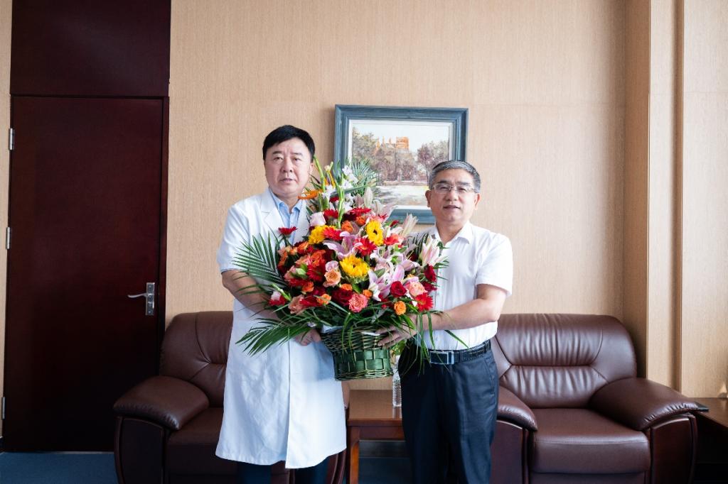 看望慰问中,胡金焱与院士就医工交叉对医学领域的影响以及如何加快高层次复合型医学人才培养进行了深入的探讨,同时恳请院士继续关注和支持学校的发展建设,并表示会进一步做好院士服务工作。张英泽院士感谢学校给与的关怀和重视,并介绍了近期自己在科研方面的进展情况,表示将一如既往,竭尽所能为学校的发展做出更大的贡献。