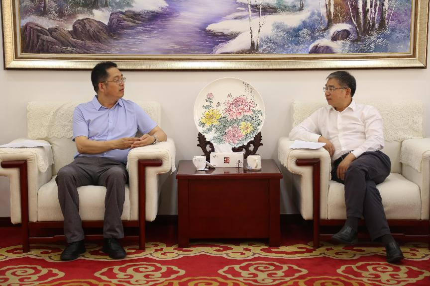 胡金焱欢迎陈广保回到母校,他亲切询问了陈广保的近况,充分肯定了墨尔本校友会的工作。他介绍了学校在学科建设、人才培养、国际交流合作、校友助力工程等方面工作的进展情况。胡金焱希望墨尔本校友会进一步加强与母校的联络,整合资源,与母校共赢发展。刘彩云希望陈广保在校友拓展、引才引智方面发挥好海外校友的作用,继续关心和支持母校的发展,为学校的事业发展建言献策。