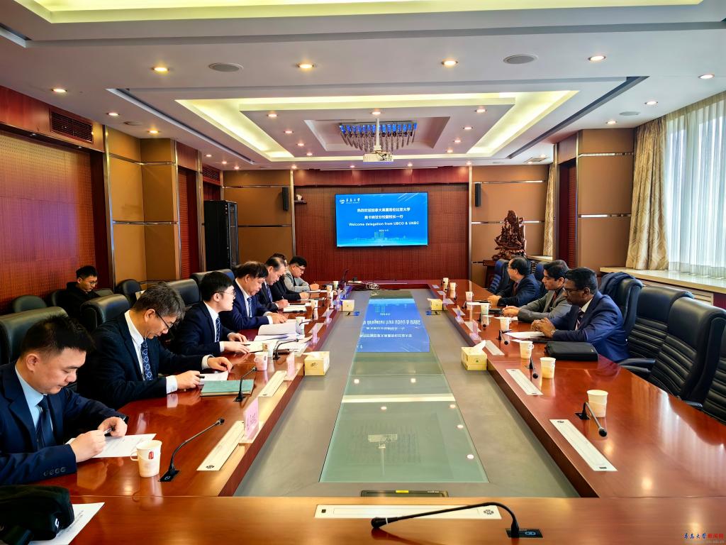 加拿大英属哥伦比亚大学(UBC)奥卡纳甘分校教授、生命周期管理实验室(LCML) 联合负责人Kasun Hewage,加拿大工程研究院院士、北英属哥伦比亚大学(UNBC)教授LI Jianbing一同到访。学校科技处、人力资源处、国际交流合作处、环境科学与工程学院主要负责人参加了会议。会前,代表团一行参观了我校分析测试中心和校史馆。