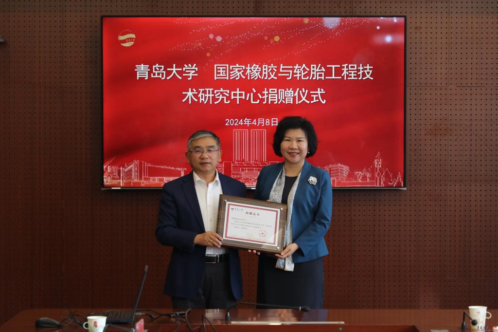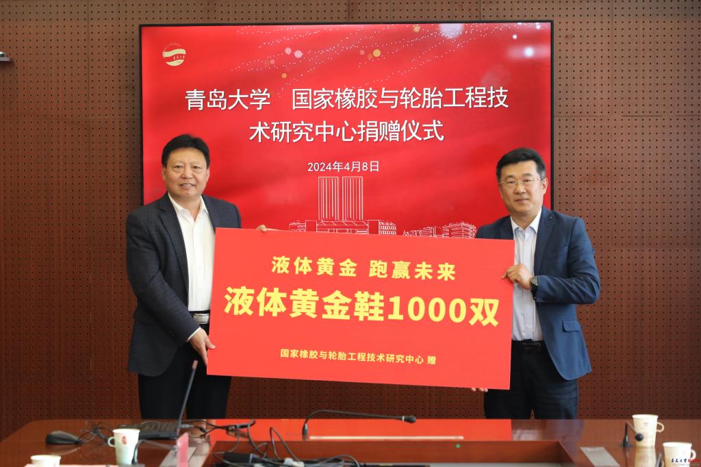 新闻网讯 4月8日下午,国家橡胶与轮胎工程技术研究中心(以下简称“国橡中心”)捐赠仪式在我校办公楼201会议室举行。国橡中心副主任、赛轮集团董事长、92级校友刘燕华,国橡中心副主任、维可迈董事长、90级校友王金健,国橡中心项目发展委员会主任、赛轮集团副总裁、财务总监耿明,校党委书记胡金焱出席仪式。党委常委、副校长陈涛主持仪式。