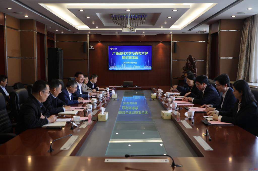 新闻网讯 4月16日上午,广西医科大学党委书记黄照权一行来访我校。校党委书记胡金焱在办公楼201会议室会见并座谈。