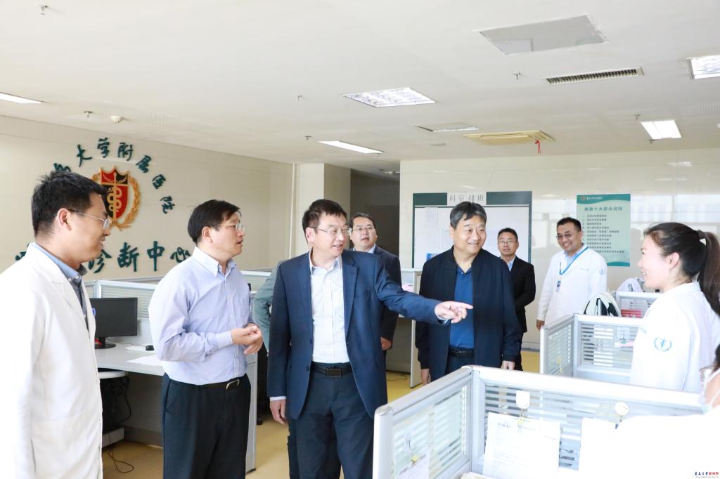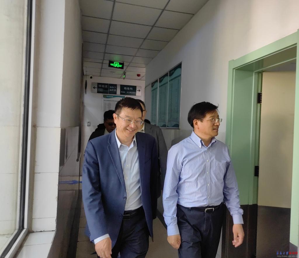魏志强还调研考察了学校附属医院,在听取附属医院党委书记蒋光峰关于附属医院发展情况汇报后,他指出,附属医院确实与想象中的一样,继承发扬了青医的优良传统、声誉和风范,在门诊量、手术量、全国公立医院考核等指标中,特别在器官移植、达芬奇机器人手术、互联网医疗等方面,形成了自己的优势和特色,走在全国同类医院的前列。广大医护人员用自己的辛勤付出维护着青大医学的声誉,守护着人民的生命健康,他向为青医发展做出无私贡献的每一位青医人表示衷心的感谢和诚挚的敬意。