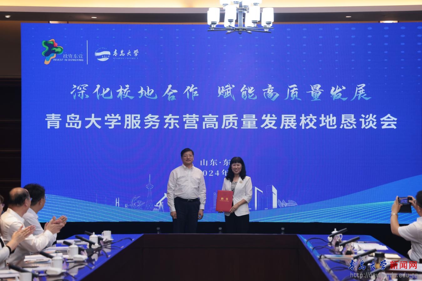 魏志强向刘彩云颁发东营研究院院长聘书。