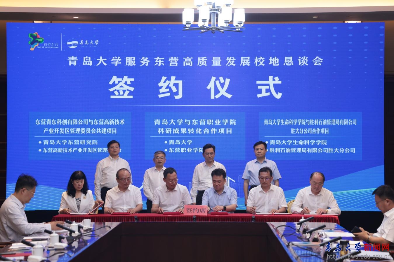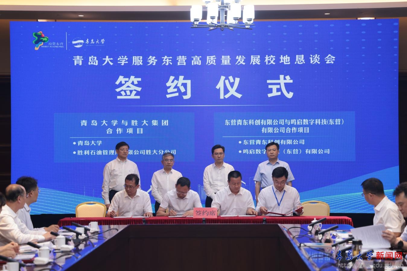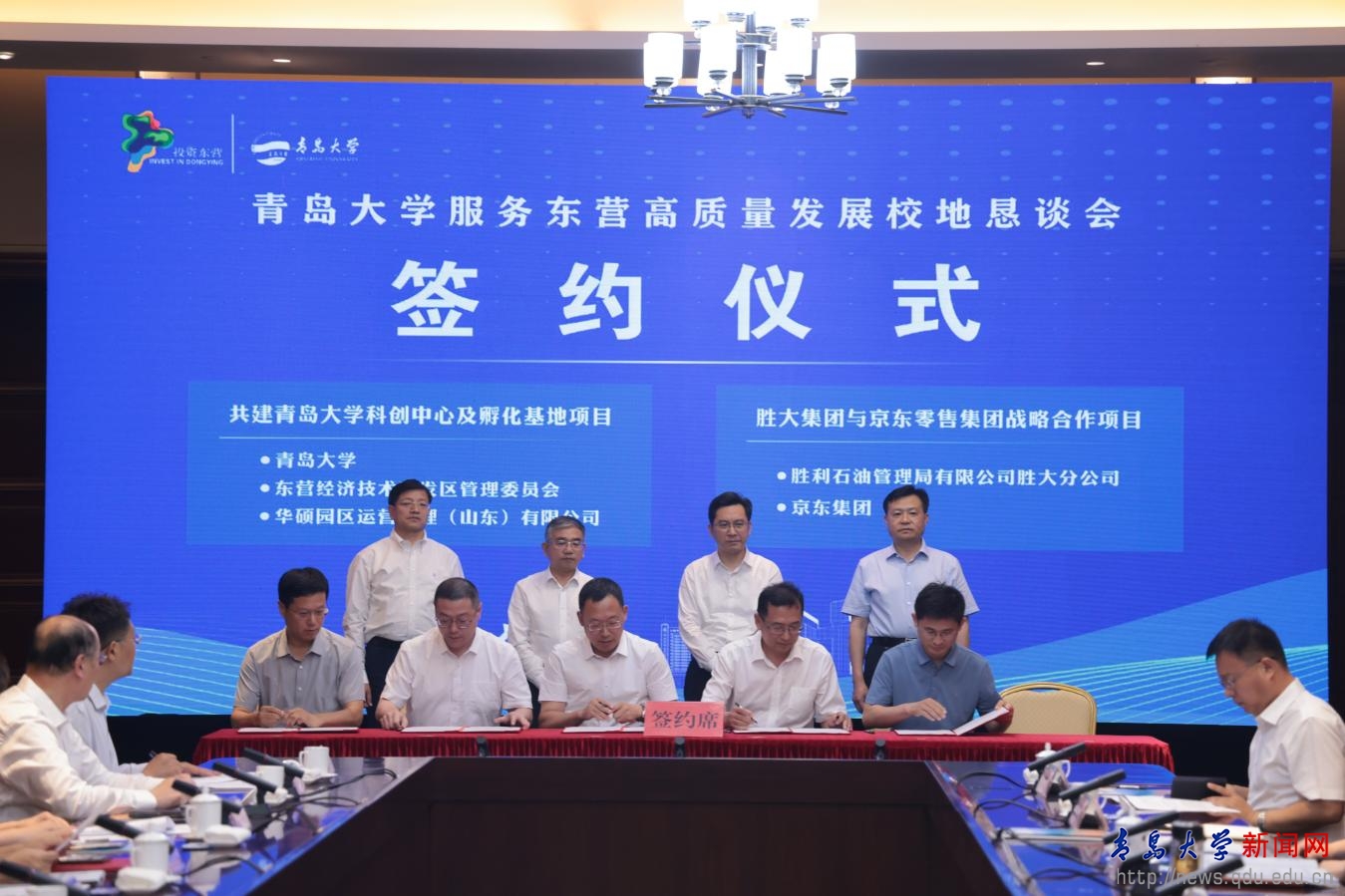 在胡金焱、魏志强、陈必昌、何宪卓见证下,双方举行了“共建开运电竞,每一场竞技都是好运的开始科创中心及孵化基地项目”、“开运电竞,每一场竞技都是好运的开始与胜大集团合作协议”、“东营青东科创有限公司与东营高新技术产业开发区管理委员会共建开运电竞,每一场竞技都是好运的开始东营研究院合作协议”、“开运电竞,每一场竞技都是好运的开始与东营职业学院科研成果转化合作协议”、“开运电竞,每一场竞技都是好运的开始生命科学学院与胜利石油管理局有限公司胜大分公司合作协议”等项目和协议的签署。