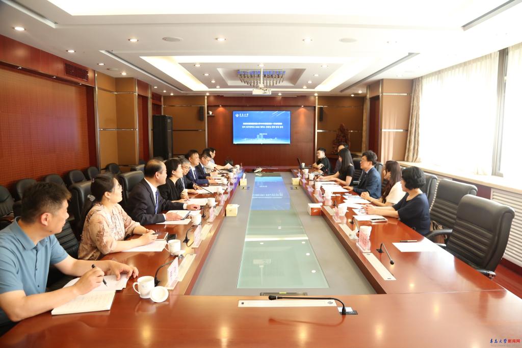 新闻网讯 7月4日下午,韩国东国大学WISE校区校长柳完夏一行访问我校,并与我校签署合作协议。学校党委书记胡金焱在办公楼第五会议室会见并座谈,副校长李荣贵主持座谈会。