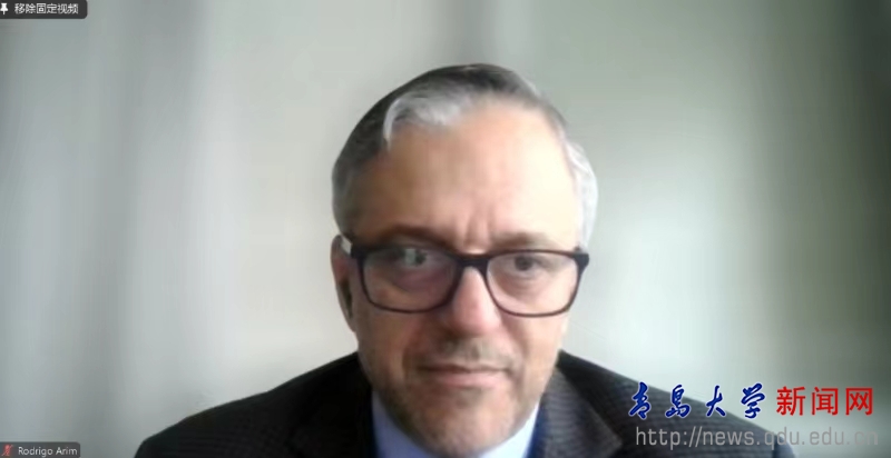 乌拉圭驻华大使馆公使衔参赞马丁·奥兰多转达了乌拉圭驻华大使费尔南多·卢格里斯大使的诚挚问候,并转达大使对乌中在教育领域的互动给予了高度关注,并表现出极大的兴趣。希望出席会议的各位专家学者能够为论坛注入生命,在互利共赢的基础上,通过科学创新的方式,对两国各个领域全面战略伙伴关系的形成做出积极贡献。