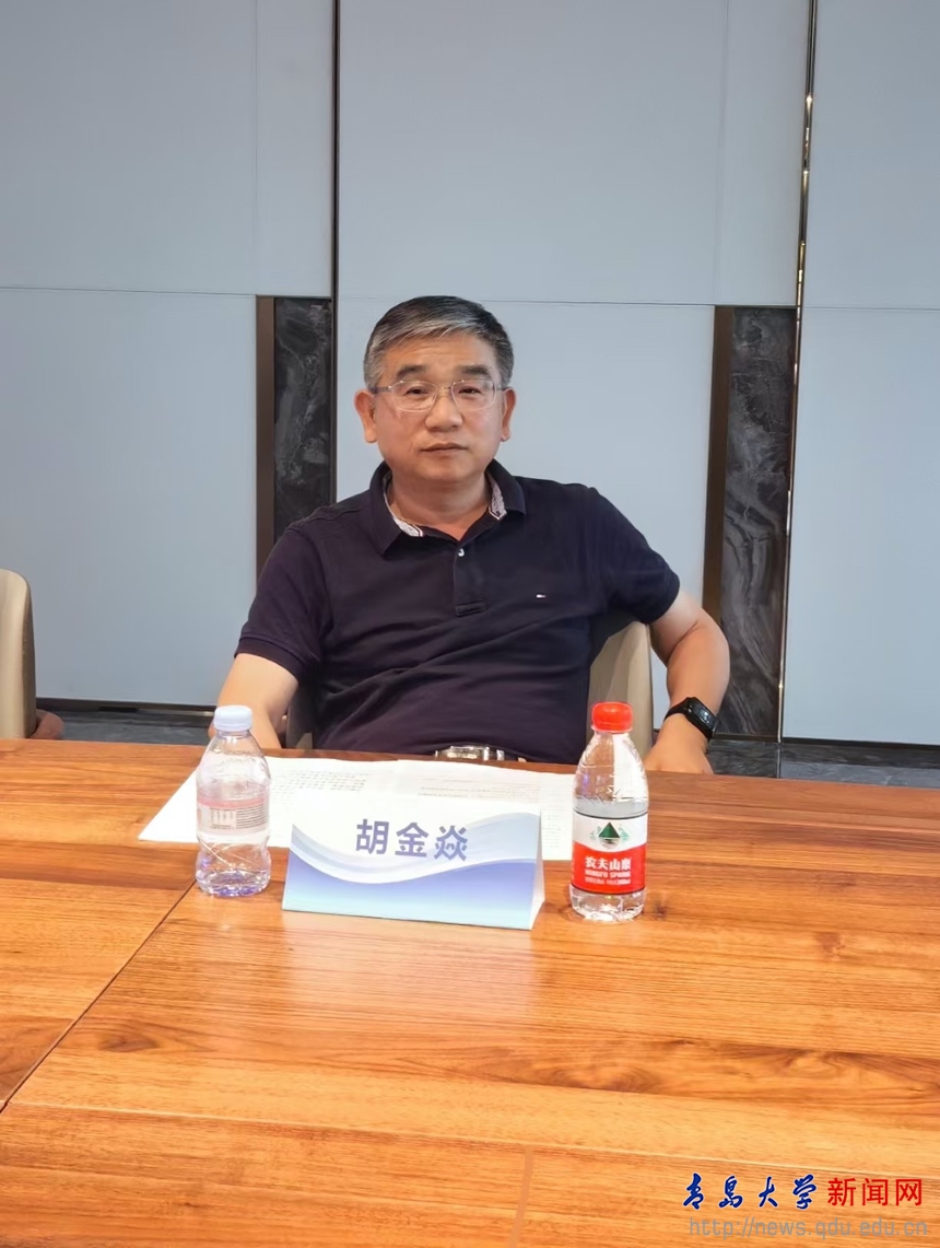 座谈会上,胡金焱向校友们介绍了学校近几年在人才培养、学科建设、科学研究、校企合作等方面取得的进展和成果。他表示,学校高度重视校友工作,校友是学校最为宝贵的财富和资源,也是学校今后加快高质量发展、取得更加辉煌成就的重要支持力量。校友发展好是学校全体师生的由衷期盼。他对上海校友会的工作理念和建设成效表示高度肯定,校友会成员在各自工作岗位上拼搏奋斗,为服务地方经济做出了重要贡献,为学校赢得更好声誉。他强调,要积极推广上海校友会的建设经验,将校友工作做的更加丰富、细致、有效。他希望各位校友和学校一道继续努力,实现母校和校友事业的协同发展。最后,胡金焱诚挚邀请校友们常回家看看。上海校友会执行会长栾伟玲代表上海校友会对胡金焱一行表示热烈欢迎,对母校改革发展取得的成就感到骄傲和自豪。栾伟玲详细介绍了上海校友会的运行机制和建设情况。校友代表任钦武表达了对母校、校友会的感谢,感谢母校搭建了校友和母校之间、校友和校友之间交流共进的平台。校友代表山东石油化工学院党委副书记、分管日常工作的副校长于红波(正校级),山东交通学院党委副书记、院长孔伟金,95级染整工程专业宋伟,96级服装设计专业王海波,02级艺术设计专业胡宇捷参加座谈会。