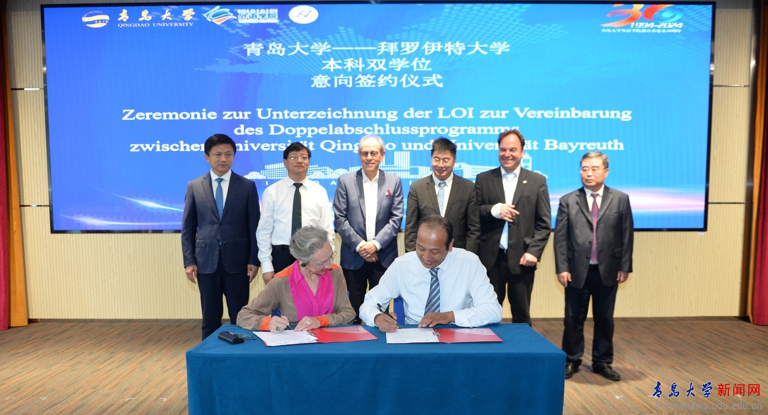 签约环节上,我校外语学院德语系主任綦甲福和拜罗伊特大学跨文化日耳曼学系主任格辛·施韦尔分别代表两校签署了本科双学位联合培养意向书。