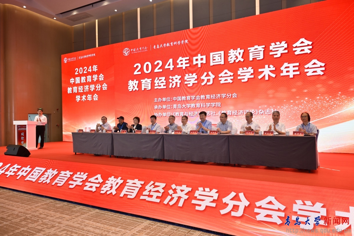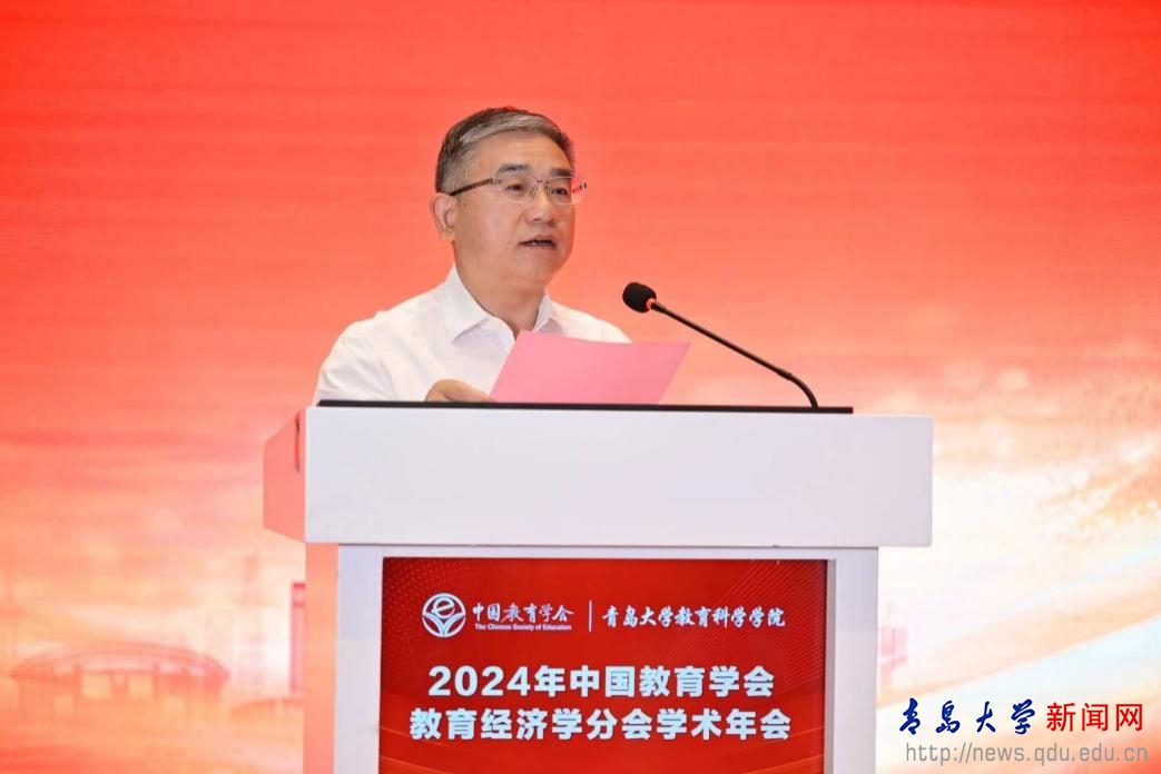 新闻网讯 9月21—22日,由中国教育学会教育经济学分会主办、我校教育科学学院承办的“2024年中国教育学会教育经济学分会学术年会”在青岛海天金融中心召开。校党委书记胡金焱出席大会并致辞。中国教育学会副会长孟繁华教授、中国教育学会教育经济学分会第九届理事会理事长杜育红教授、中共中央党校(国家行政学院)赖德胜教授、《教育研究》主编张彩云研究员、《清华大学教育研究》主编叶富贵教授、《教育学报》编辑部李涛主任等来自110余所高校院所及科研机构的400余名专家学者及师生代表参加本次大会。开幕式由校党委副书记胡钦晓主持。