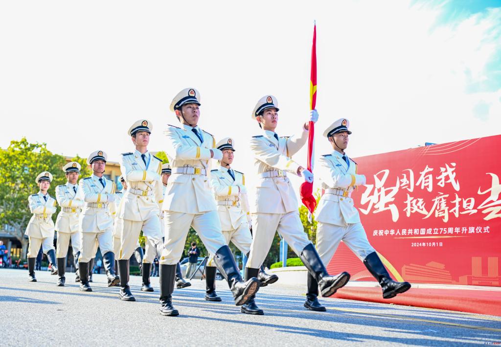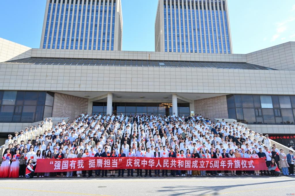 新闻网讯 10月1日上午,我校在浮山校区和金家岭校区同时举行“强国有我 挺膺担当”庆祝中华人民共和国成立75周年升国旗仪式。校党委常委、副校长陈涛出席升旗仪式并讲话。校团委书记李鹏主持仪式。
