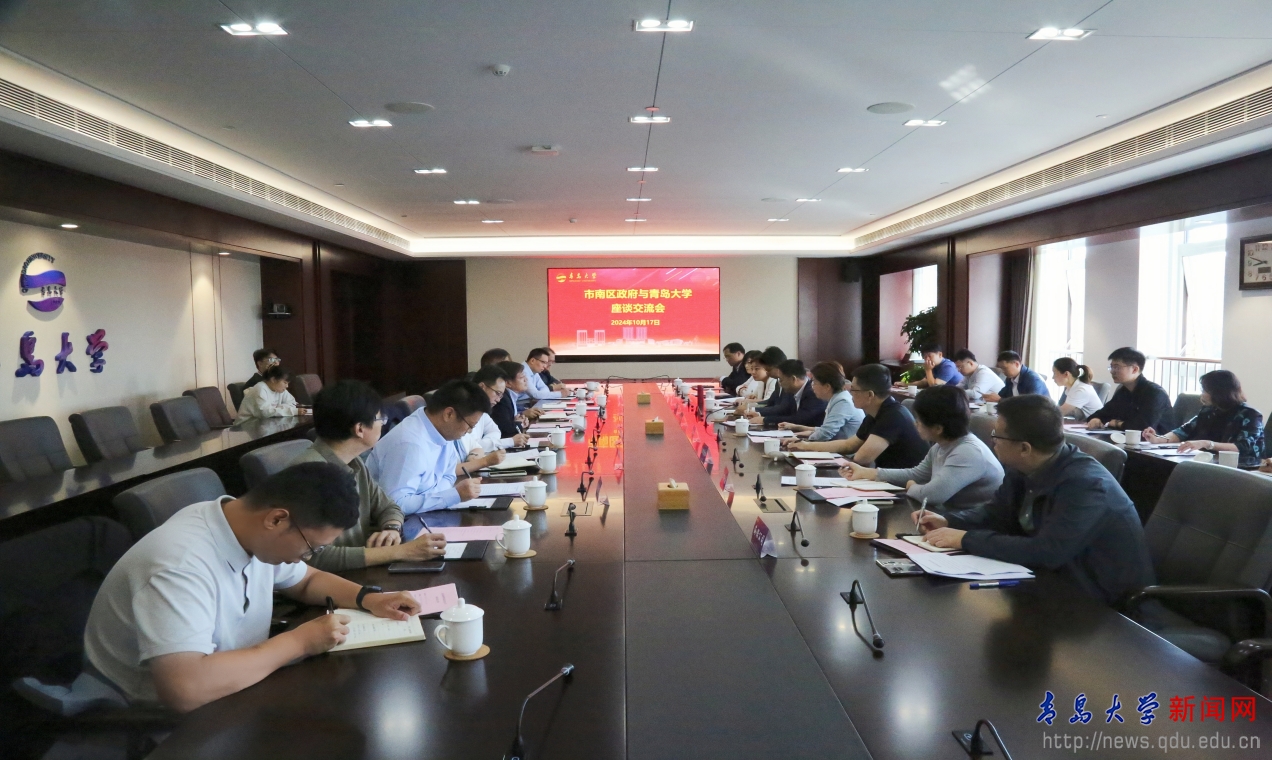 新闻网讯 10月17日上午,市南区政府区长刘存东一行来访我校,校长魏志强在会议中心302会议室与来访客人座谈。市南区政府副区长冯洪珍、张军,副校长李荣贵参加座谈。