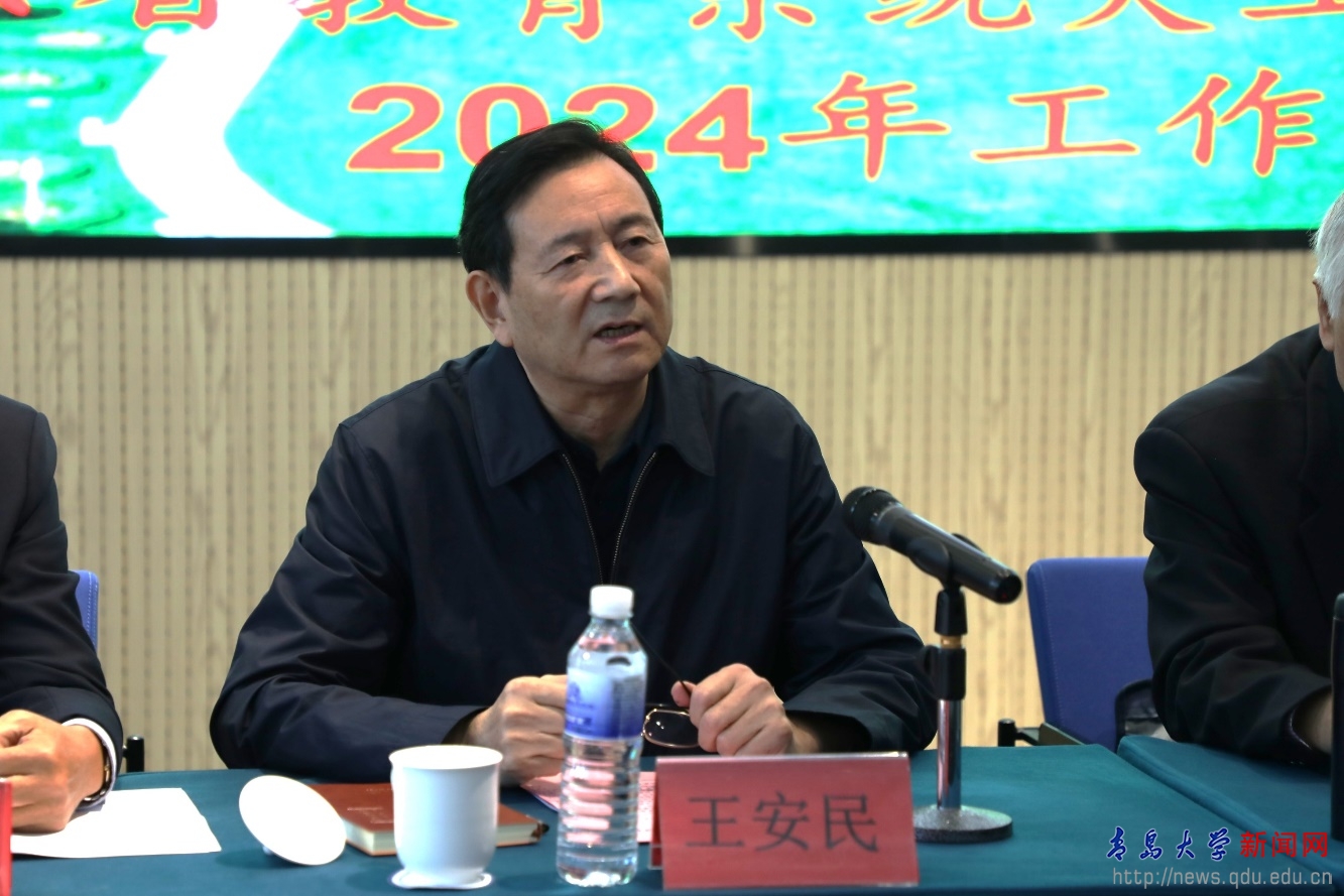 王安民在讲话中介绍了青岛市关工委的工作成效,传达了上级关工委近期有关会议精神。表示市关工委要以此次会议为契机,借鉴各地市教育局关工委、各高校关工委的工作经验和先进做法,加强与青岛教育系统关工委、驻青高校关工委的联系协作,为全省关心下一代工作作出新的更大贡献。他希望高校充分发挥好资源优势,加强与党政有关部门研究机构的合作,培养学习型、研究型、思考型关心下一代工作研究人才,努力造就一支具有坚定政治立场、扎实理论素养、丰富业务知识、综合研究能力的关心下一代工作理论研究队伍。