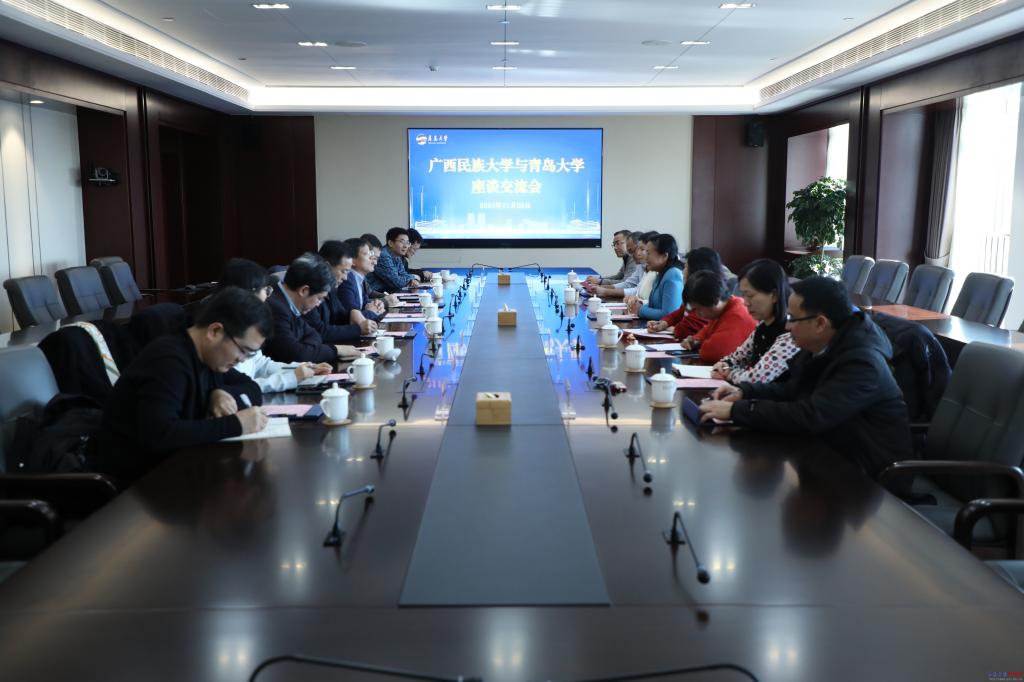 新闻网讯 11月28日上午,广西民族大学党委副书记、校长韦仕珍一行到我校调研交流,校长魏志强在会议中心302致远厅与来宾一行进行座谈交流,校党委常委、副校长李建波陪同调研。