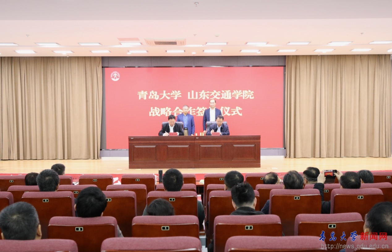 新闻网讯 11月28日,我校与山东交通学院战略合作协议签署仪式在山东交通学院长清校区明德楼101报告厅隆重举行。校党委书记胡金焱,校党委常委、副校长陈涛,山东交通学院党委副书记、院长孔伟金,山东交通学院党委委员、副院长姜华平,山东交通学院党委委员、组织部部长王兴盈等领导出席仪式,姜华平主持仪式。
