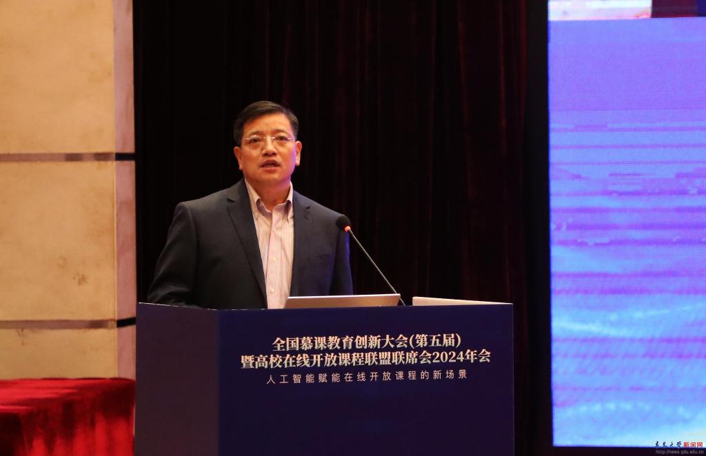 新闻网讯 12月22日,全国慕课教育创新大会(第五届)暨高校在线开放课程联盟联席会2024年会在我校举办。大会以“人工智能赋能在线开放课程的新场景”为主题,教育部高等教育司课程教材与实验室处刘永强处长、山东省教育厅高教处曾宪文处长出席会议。全国28个慕课联盟成员以及高校、企业的约600名代表参加会议。校长魏志强出席会议并致辞。