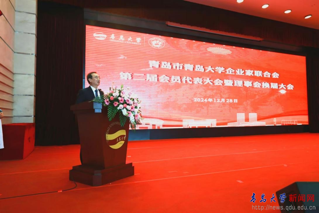 刘恩贤在致辞中指出,校友企业家作为传承青大精神和弘扬企业家精神的代表,是推进母校事业发展的重要力量,也是母校社会影响力的重要表现。他介绍了学校的发展成就,他希望企业家联合会加大工作运行的“力度”和拓展校地企合作的“深度”,充分发挥优秀校友企业家的信息优势、平台优势和资源优势,打造校友企业家互助共进的生态圈,助推产业链、创新链、教育链、人才链的深度融合,打造“新时代校友经济”的新形态,抢占发展赛道的新蓝海,在青岛经济社会发展中建功立业,在实现中华民族伟大复兴中国梦的实践中传承青大精神、唱响青大声音、做出青大贡献。