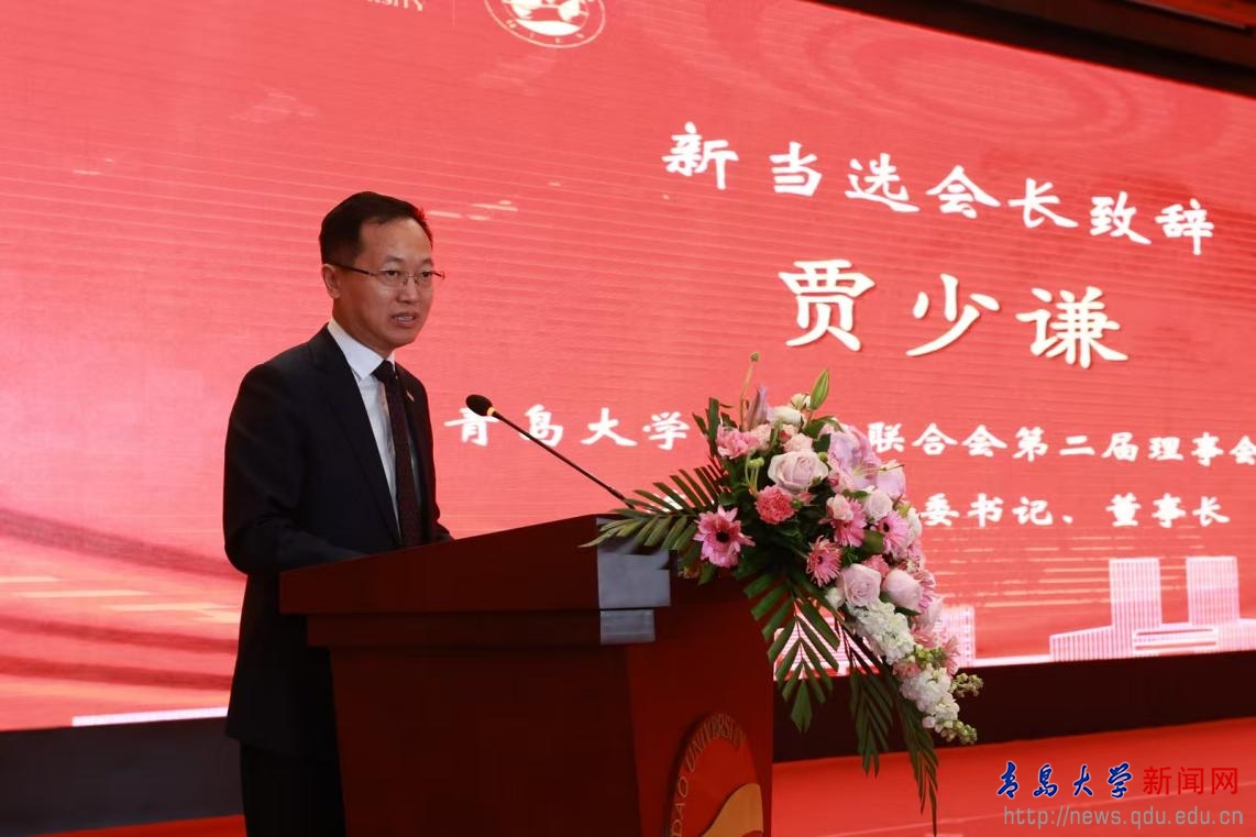 胡金焱对大会的圆满成功和第二届理事会班子成员的当选表示祝贺。他表示,这是企业家联合会发展历程中的一个重要时刻,标志企业家联合会将开启新的征程,迈向新的高度。正是基于广大校友对母校的深厚情感才使得企业家联合会的工作顺利开展,第一届理事会带领会员们做了大量卓有成效的工作,校友企业家们坚守岗位、勇于担当,推动各项工作稳步前行。他指出,在青岛市工商联给予的关心和支持下,企业家联合会成立了党组织,这将有助于发挥党组织的引领作用,凝聚各方力量,推动企业家联合会沿着正确方向大步前进。同时,本次理事会换届实现了老中青结合,汇聚了不同年龄段的智慧和经验,充满了活力与创新精神,并以开阔的视野明晰了新的目标定位。希望在贾少谦会长的带领下,企业家联合会能够立足青岛、着眼全国乃至全球的发展视域,在全新且富有远见的目标引领下取得新的成效,创造出更多新的成果,书写更加辉煌的篇章!