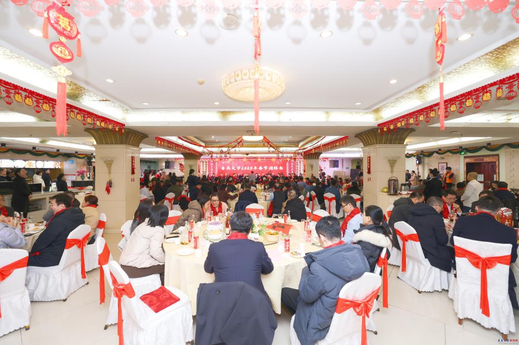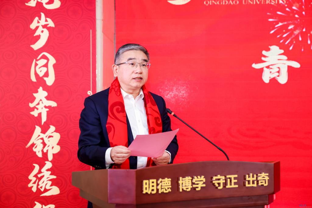 校党委书记胡金焱致新春贺词。他指出,2024年学校深入贯彻落实党的二十大和二十届二中、三中全会精神,全面落实教育强国和教育强省战略,聚力转型发展、创新发展、突破发展,继往开来,积厚成势,在高质量发展的道路上奋勇前进。他全面总结了学校过去一年在学科建设、人才培养、科学研究、社会服务、文化传承创新、国际交流合作等方面取得的成绩,通报了学校事业发展取得的标志性突破性成果。胡金焱表示,这一系列办学成绩的取得,离不开每一位青大人的倾情投入、接续奋斗,他代表学校向一年来辛勤工作在教学、科研和服务等各条战线上的广大教职员工表示衷心的感谢,向关心学校发展并为学校事业不断做出新贡献的老领导、老同志、老专家致以崇高的敬意和新春的祝福。胡金焱强调,2025年是学校全面落实第四次党代会精神的重要一年,是实现“十四五”规划目标任务的收官之年,也是全面提升办学能力、加快推进“双一流”建设的关键一年。学校上下要锚定目标、坚定信心,以敢打必胜的勇气、久久为功的韧劲,践行青大人的使命担当,奋力开创高水平综合性研究型大学建设新局面。