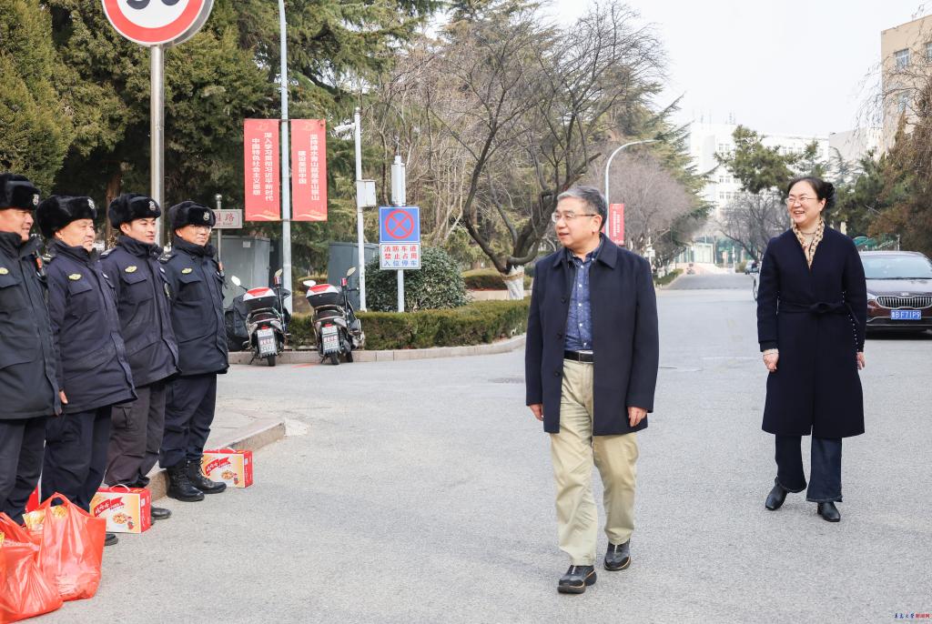 胡金焱一行先后到浮山校区校园警务室、后勤服务大院、国际学术交流中心看望慰问了寒假期间坚守岗位的一线教职工,代表学校向他们致以真挚的问候,为他们送上节日慰问品,并叮嘱他们合理安排工作生活,欢度新春佳节。胡金焱详细了解春节期间各工作岗位的运行情况和保障情况,对假期中校园安全保卫、后勤保障等方面的工作提出明确要求,各相关部门要认真履职尽责,强化安全意识,为师生欢度春节提供坚实保障。
