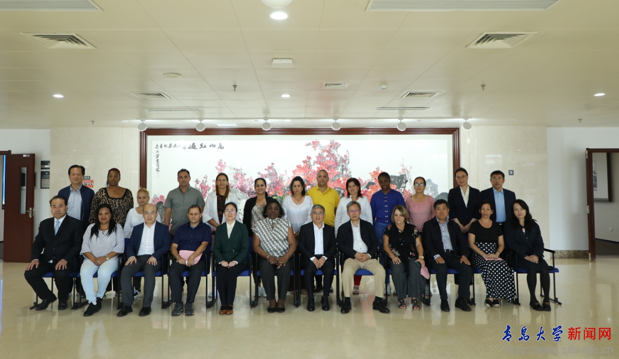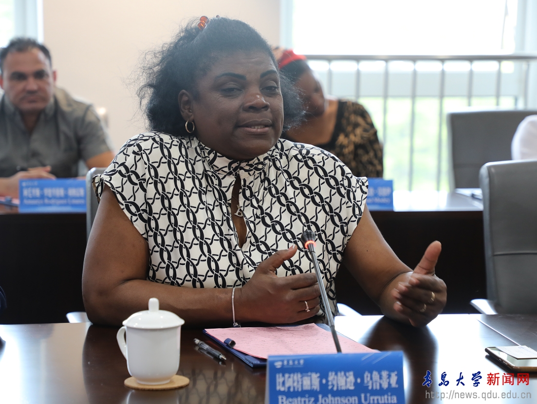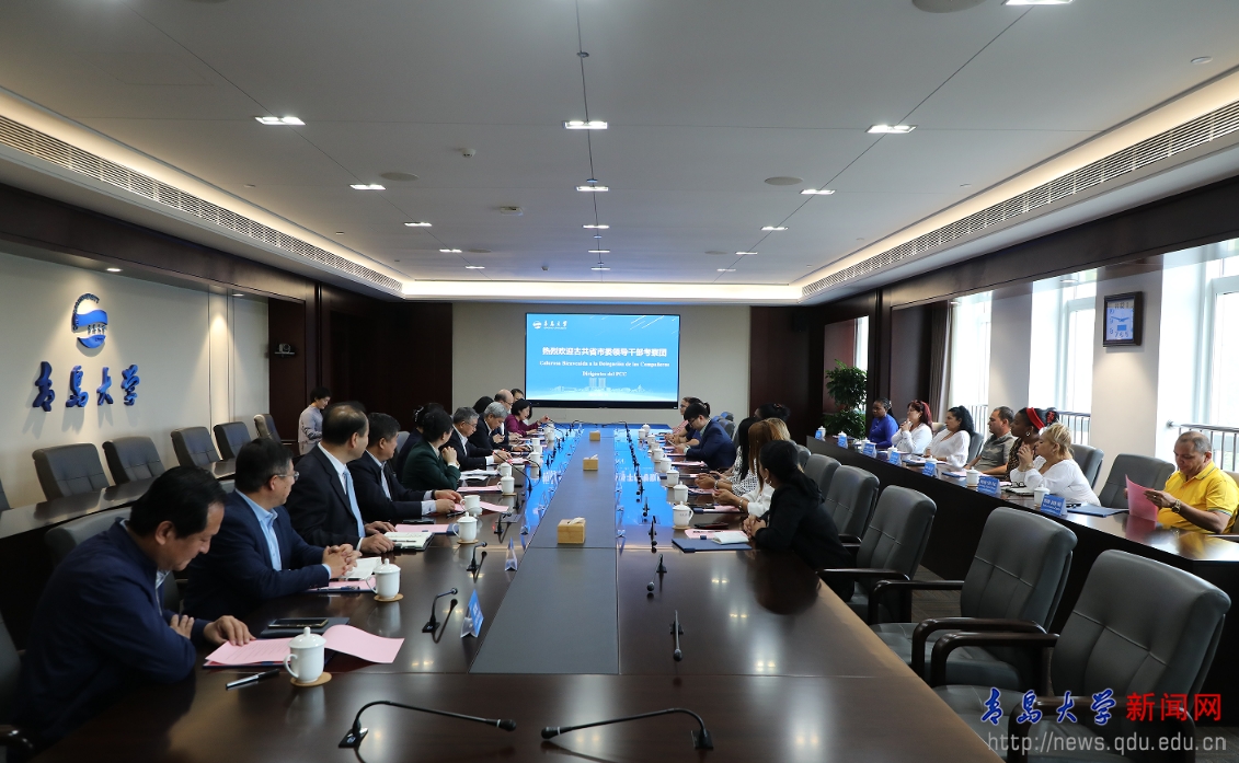 新闻网讯 5月15日下午,古巴共产党中央委员、圣地亚哥省委第一书记比阿特丽兹·约翰逊·乌鲁蒂亚率领 “古共省市委领导干部考察团”一行15人来我校访问交流,校党委书记胡金焱在会议中心302会议室会见并与代表团进行了座谈交流。中联部五局、青岛市委外办有关负责人陪同考察团来校访问。校党委常委、副校长何燕主持座谈会,校党委常委、宣传部部长吴世珍出席座谈会。