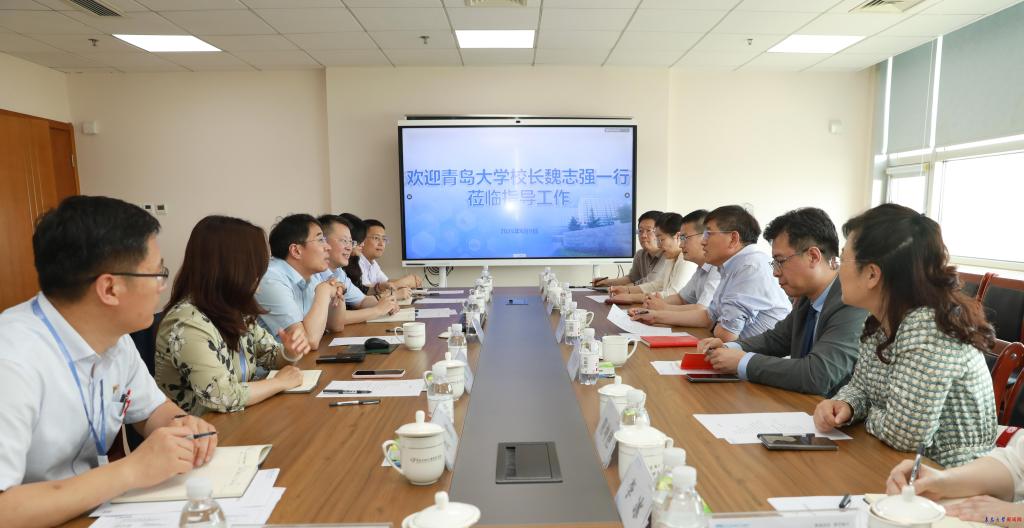 新闻网讯 6月9日,校长魏志强一行赴青岛市妇女儿童医院进行专题调研,了解医院发展现状,共商合作发展大计。校党委常委、副校长牛海涛,青岛市妇女儿童医院党委书记泮思林、副院长(主持行政工作)于洪臣、副院长高岩参加座谈。
