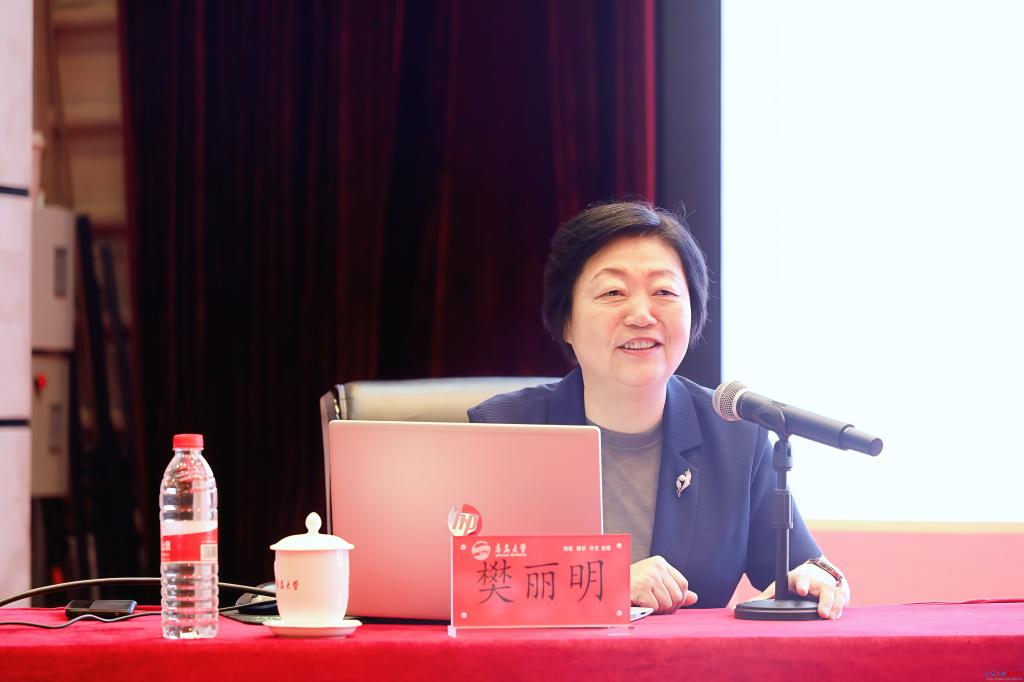 新闻网讯 9月4日上午,学校召开2025年暑期中层干部研讨班,邀请到教育部新文科建设工作组组长、全国新文科教育研究中心名誉主任、山东大学国家治理研究院院长樊丽明教授作题为《教育强国背景下的新文科建设》专题辅导报告。校党委书记胡金焱主持报告会。校领导魏志强、肖江南、陈涛、李荣贵、刘恩贤、何燕、李建波、牛海涛、吴世珍、张守珩出席报告会。