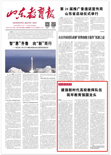 新闻网讯 9月22日,《山东教育报》头版刊登我校党委书记胡金焱的理论研究文章《建强新时代高校教师队伍 筑牢教育强国龙头》。