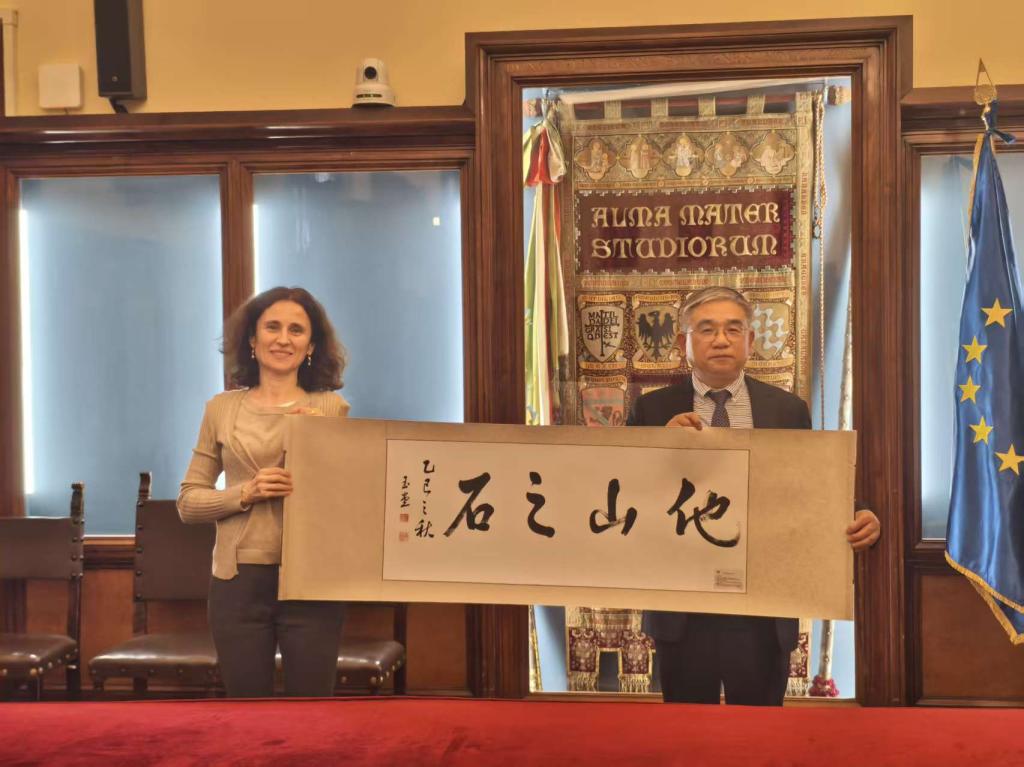 访问博洛尼亚大学期间,代表团与该校副校长拉斐拉・坎帕内举行工作会谈。基于双方学科设置的相似性,双方一致同意,通过加强学科和教授交流,推动双方在国际学术交流、科学交叉研究等多个领域的合作,探讨在医学、生命科学、设计学等领域开展合作研究,以及在法律、历史、教育和国际关系领域开展学术交流和联合培养。