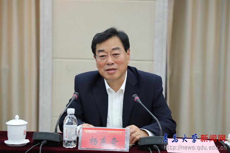 新闻网讯 10月18日下午,山东省委副书记杨东奇来校与师生座谈并讲授思政课。省委教育工委常务副书记、省教育厅党组书记、厅长邓云锋,省管企业监事会主席、省委主题教育第十一巡回指导组副组长韩斌,青岛市委常委、组织部部长边祥慧,市委教育工委常务副书记、市教育局党组书记、局长刘鹏照出席座谈会。校长夏东伟主持座谈会。